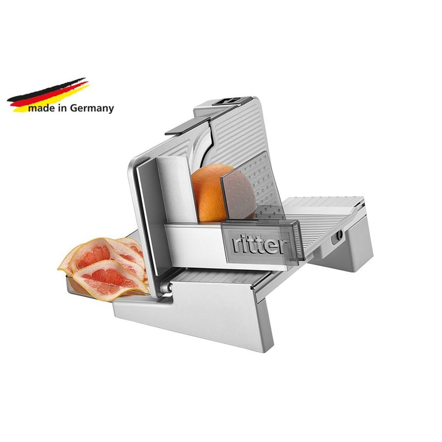 Multikrájač Ritter Secura 9 z dielne nemeckej značky Ritter - to je kvalitné prevedenie s praktickými funkciami a úžasne jednoduchým ovládaním.Vyhotovenie krájača Secura 9 v celokovovom prevedení zaisťuje najlepšie výsledky rezania, vysokú stabilitu a odolnosť. Optimálny sklon opornej plochy umožňuje krájanie s minimálnym úsilím. Okrem toho vysoko kvalitné sane v kovovom prevedení podporuje komfort obsluhy. Sane možno odomknúť a v prípade potreby odmontovať - komfortná údržba! Pre vyššiu bezpečnosť je možné použiť trvalý aj dočasný chod.